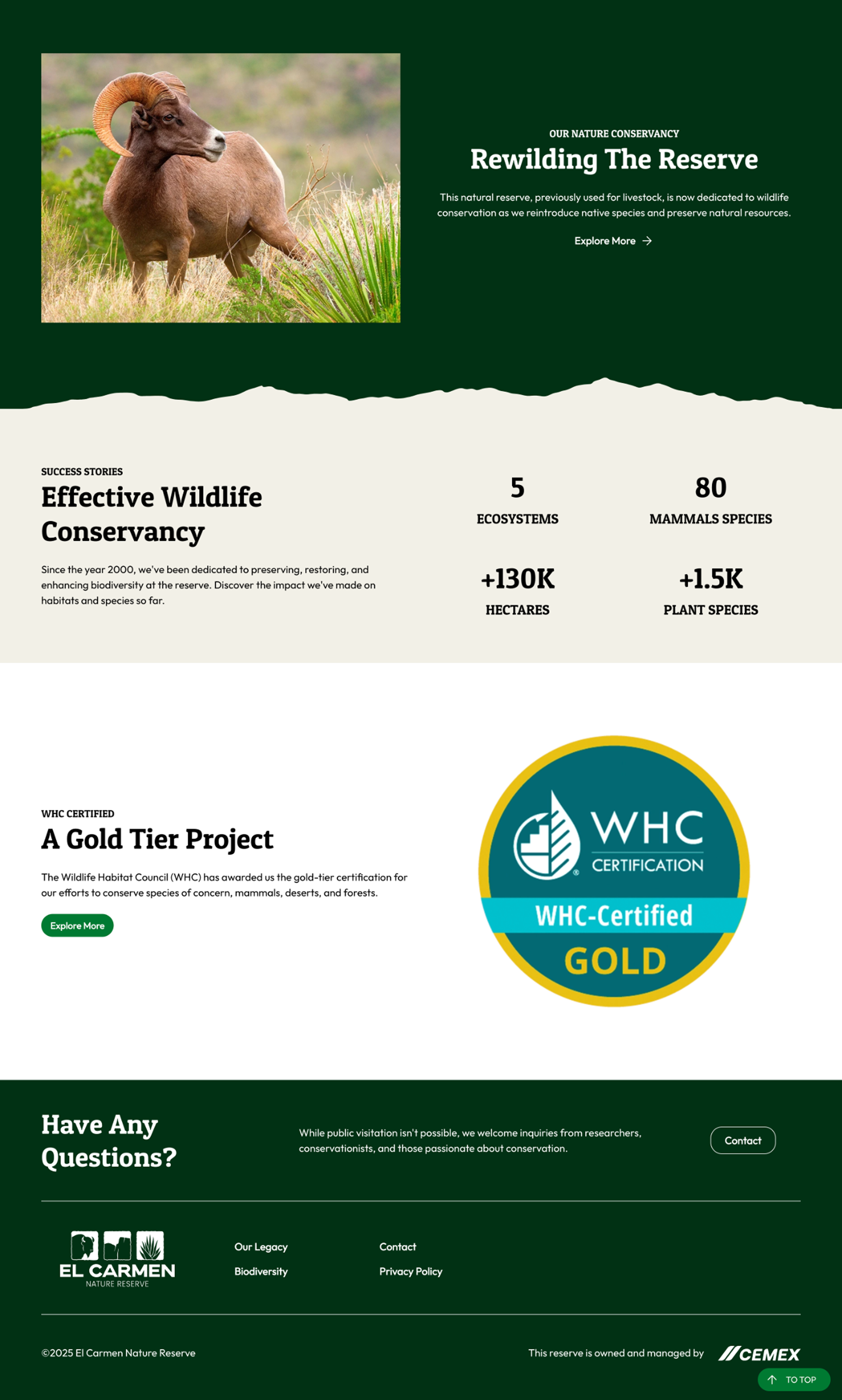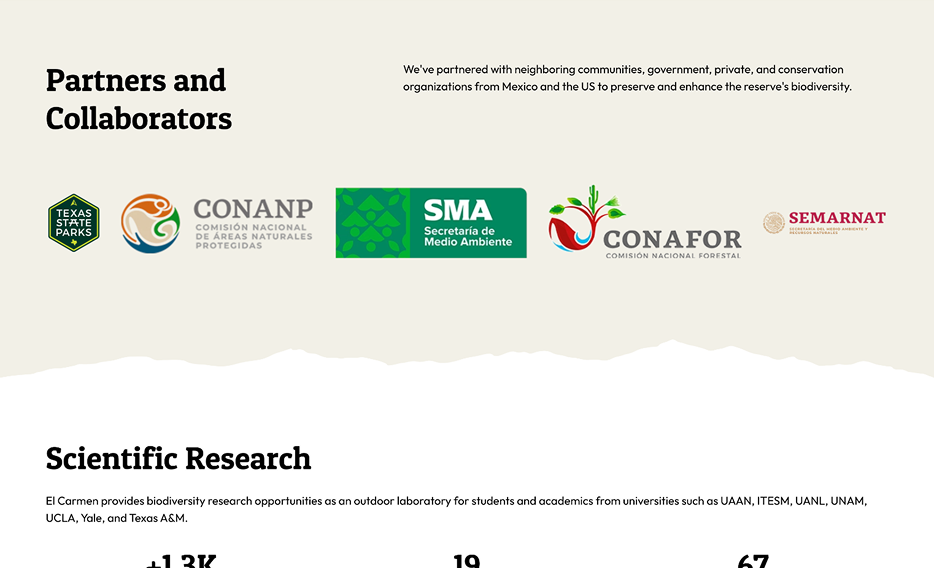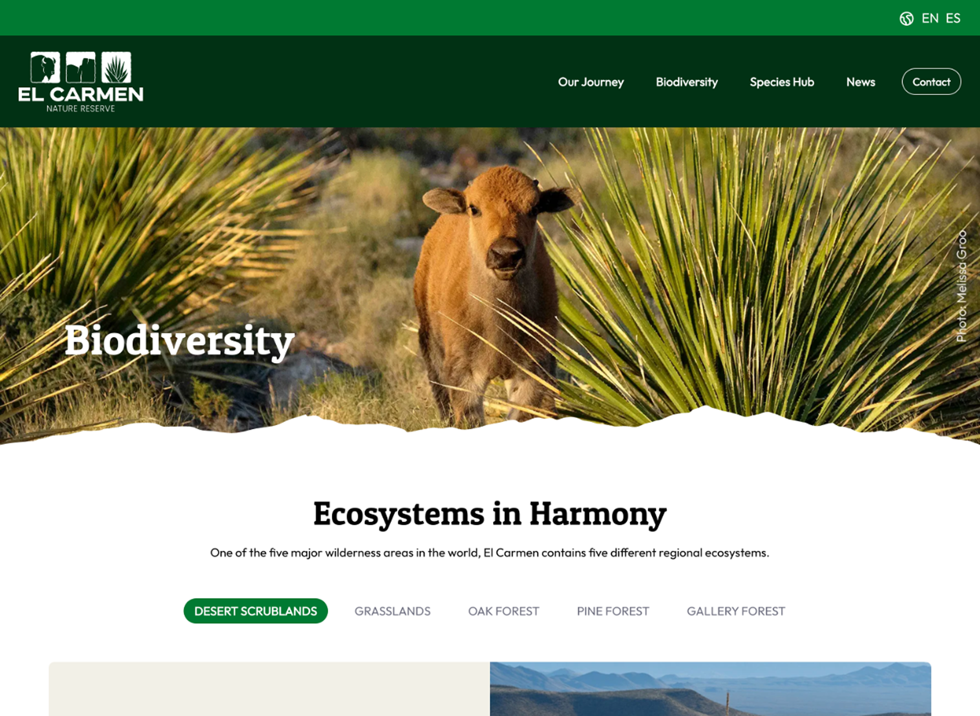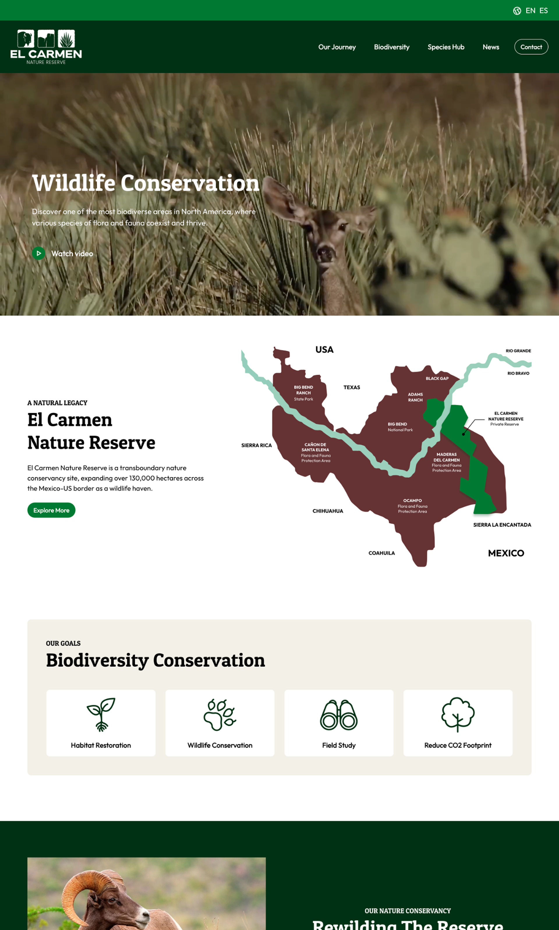 Designed and implemented a new website for El Carmen Nature Reserve—one of North America’s most biodiverse areas and among the world’s five greatest wilderness ecosystems—highlighting 25 years of wildlife conservation success.